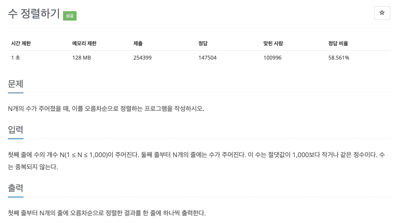 문제 015 : 수 정렬하기 1