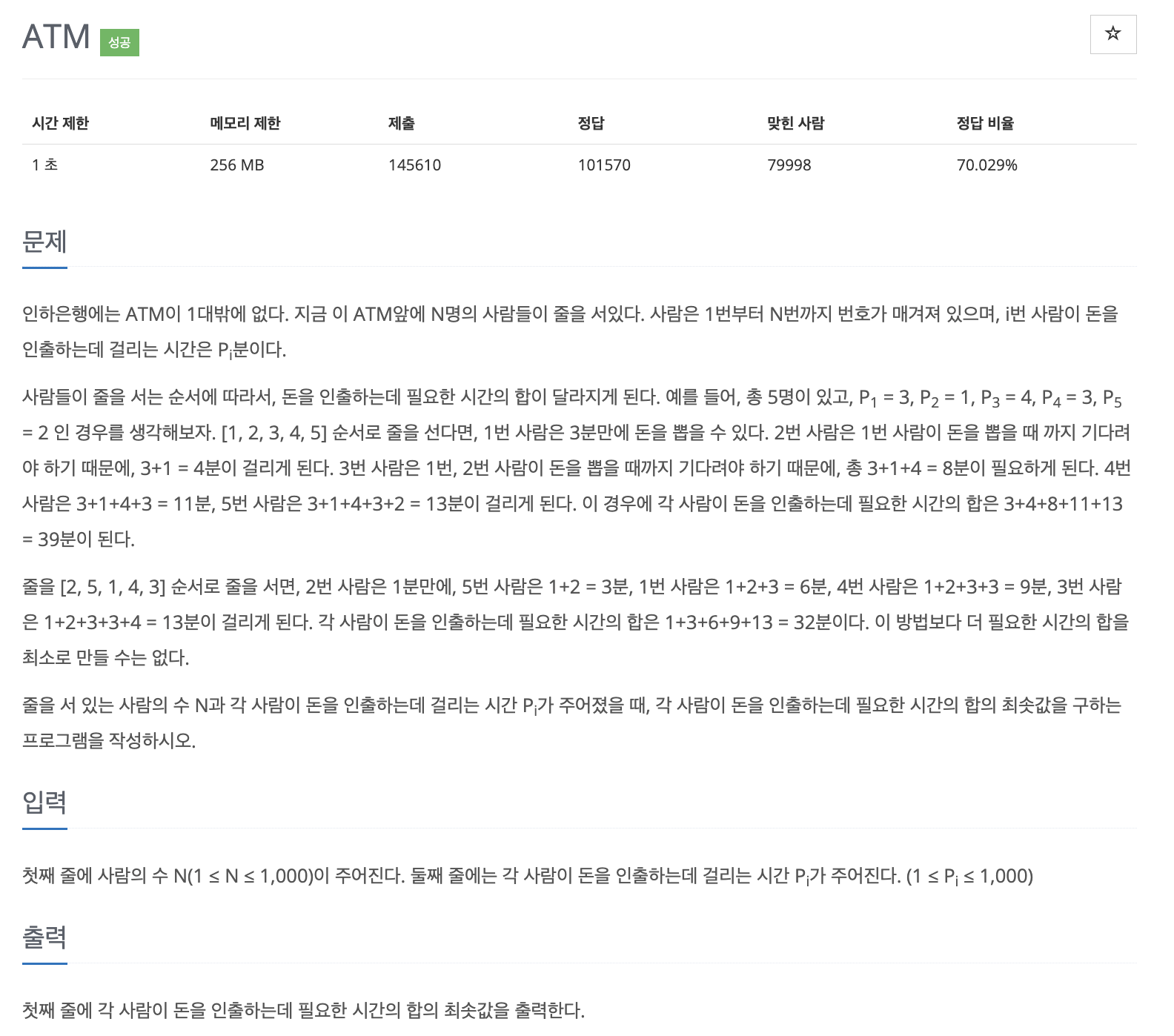 문제 018 : ATM 인출 시간 계산하기